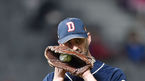 [OSEN=인천, 민경훈 기자] 13일 오후 인천 SK행복드림구장에서 열린 '2015 타이어뱅크 KBO 리그' SK 와이번스와 두산 베어스의 경기, 5회말 2사 SK 조동화 타석에서 두산 선발 니퍼트가 글러브의 끈을치아로 조이고 있다. 이 날 경기에