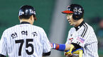 [OSEN=잠실,박준형 기자] 13일 잠실구장에서 열리는 ‘2015 타이어뱅크 KBO리그’ LG 트윈스와 NC 다이노스의 경기, 5회말 1사 LG 정성훈이 내야안타를 날린후 한혁수 코치와 하이파이브를 하고 있다. 이날 LG와 NC는 각각 헨리 소사와