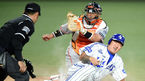 [OSEN=대구, 지형준 기자] 13일 오후 대구야구장에서 열린 '2015 타이어뱅크 KBO 리그' 삼성 라이온즈와 한화 이글스의 경기, 3회말 2사 1,2루에서 삼성 최형우가 박해민의 적시타에 홈에서 한화 조인성에 태그아웃 당하고 있다. 삼성