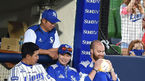 [OSEN=대구, 지형준 기자] 13일 오후 대구야구장에서 열린 '2015 타이어뱅크 KBO 리그' 삼성 라이온즈와 한화 이글스의 경기, 3회초 무사 1루에서 삼성 클로이드가 구자욱이 투런포를 날리고 받은 홈런인형을 달라고 손짓하고 있다.