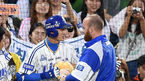 [OSEN=대구, 지형준 기자] 13일 오후 대구야구장에서 열린 '2015 타이어뱅크 KBO 리그' 삼성 라이온즈와 한화 이글스의 경기, 3회초 무사 1루에서 삼성 클로이드가 구자욱이 투런포를 날리고 받은 홈런인형을 가슴에 품고 미소를 짓