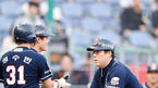 [OSEN=인천, 민경훈 기자] 13일 오후 인천 SK행복드림구장에서 열린 '2015 타이어뱅크 KBO 리그' SK 와이번스와 두산 베어스의 경기, 1회초 무사 주자 1,2루 두산 김현수가 좌월 선취 스리런 홈런을 날린 후 홈을 밟으며 정수빈, 민병헌