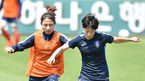 [OSEN=파주, 민경훈 기자] 사상 첫 월드컵 16강 진출을 노리는 한국 여자 축구 대표팀이 13일 오전 경기도 파주NFC(국가대표 트레이닝센터)에서 훈련을 가졌다. 미니게임중 여민지와 권하늘이 볼다툼을 하고 있다. 지난 12일에 합류