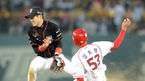 [OSEN=광주, 곽영래 기자] 14일 광주-기아 챔피언스필드에서 '2015 타이어뱅크 KBO리그' KIA 타이거즈와 kt 위즈와의 경기가 진행됐다. 3회말 1사 만루 kt 박경수가 KIA 강한울의 유격수 앞 땅볼때 1루주자 김원섭을 포스아웃으로 잡아