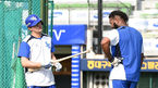 [OSEN=대구, 지형준 기자] 14일 오후 대구야구장에서 열린 '2015 타이어뱅크 KBO 리그' 삼성 라이온즈와 한화 이글스의 경기, 경기에 앞서 삼성 김상수가 나바로에 장난을 치고 있다. 삼성은 장원삼이 4승 도전에 나섰다. 올 시즌 한