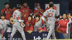 [OSEN=잠실, 백승철 기자] 15일 오후 서울 잠실구장에서 열린 '2015 타이어뱅크 KBO 리그' LG 트윈스와 SK 와이번스의 경기 5회초 2사 만루 박정권의 2타점 적시타에 득점한 박재상, 브라운이 덕아웃에서 동료들과 하이파이브를 하고
