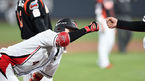 [OSEN=대전, 지형준 기자] 15일 오후 대전 한화생명이글스파크에서 '2015 타이어뱅크 KBO리그' 한화 이글스와 넥센 히어로즈의 경기가 열렸다. 4회초 1사 1,3루에서 넥센 김하성이 이택근의 중견수 희생플라이에 태그업, 홈에서 세이