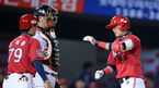 [OSEN=부산,박준형 기자] 19일 부산 사직구장에서 열린 '2015 타이어뱅크 KBO 리그' 롯데 자이언츠와 KIA 타이거즈의 경기, 6회초 KIA 김민우가 솔로홈런을 날리고 홈을 밟고 있다. 20승 20패와 19승 19패. 승률 5할, 롯데와 KIA는 현재 동