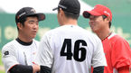 [OSEN=잠실, 김경섭 기자] 19일 오후 서울 잠실야구장에서 열린 '2015 타이어뱅크 KBO 리그' 두산 베어스와 삼성 라이온즈의 경기, 경기시작전 삼성 이승엽이 두산 코치와 인사를 나누고 있다. 두산은 삼성의 천적 더스틴 니퍼트를