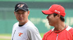 [OSEN=인천, 백승철 기자] 19일 오후 인천SK행복드림구장에서 열리는 '2015 타이어뱅크 KBO 리그' SK 와이번스와 한화 이글스의 경기 시작전 정근우가 알바레즈 코치와 이야기를 나누고 있다. SK를 상대로 강한 면모를 선보였던 쉐인