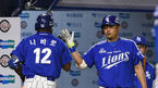 [OSEN=김경섭 기자] 20일 오후 서울 잠실야구장에서 열린 '2015 타이어뱅크 KBO 리그' 두산 베어스와 삼성 라이온즈의 경기, 7회말 2사 주자 1루 삼성 나바로가 2점 홈런을 치고 3루코치 김재걸과 기쁨을 나누고 있다. 지난 19일 경기가