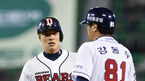 [OSEN=김경섭 기자] 20일 오후 서울 잠실야구장에서 열린 '2015 타이어뱅크 KBO 리그' 두산 베어스와 삼성 라이온즈의 경기, 5회말 2사 주자 3루 두산 민병헌이 1타점 적시타를 치고 1루 강동우 코치와 기쁨을 나누고 있다. 지난 19일