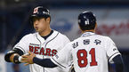 [OSEN=김경섭 기자] 20일 오후 서울 잠실야구장에서 열린 '2015 타이어뱅크 KBO 리그' 두산 베어스와 삼성 라이온즈의 경기, 5회말 두산 선두타자 김재환이 솔로홈런을 치고 3루코치 전형도와 기쁨을 나누고 있다. 지난 19일 경기가