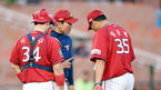 [OSEN=부산,박준형 기자] 20일 부산 사직구장에서 열린 '2015 타이어뱅크 KBO 리그' 롯데 자이언츠와 KIA 타이거즈의 경기, 1회말 2사 만루 KIA 이대진 투수코치가 마운드에 올라 선발투수 임준혁과 이야기를 나누고 있다. 첫 승 도전에