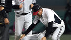 [OSEN=목동, 이대선 기자] 21일 오후 서울 목동구장에서 '2015 타이어뱅크 KBO리그' 넥센 히어로즈와 LG 트윈스의 경기가 열렸다. 7회초 1사에서 LG 양상문 감독이 넥센 조상우의 투구에 맞고 고통스러워하는 손주인을 걱정스럽게 바