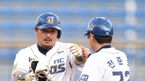[OSEN=마산,박준형 기자] 21일 오후 경남 마산구장서 열린 '2015 타이어뱅크 KBO 리그' NC 다이노스와 kt 위즈의 경기, 1회말 2사 1,2루 NC 이호준이 선취 2타점 적시타를 날리고 전준호 코치와 하이파이브를 하고 있다. 이날 NC와 kt는 에