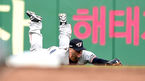 [OSEN=인천, 지형준 기자] 21일 오후 인천SK행복드림구장에서 '2015 타이어뱅크 KBO 리그' SK 와이번스와 한화 이글스의 경기가 열렸다. 1회말 무사에서 한화 폭스가 SK 이명기의 타구를 몸 날려 잡아내고 있다. SK가 한화를 상대로 주