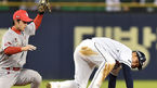 [OSEN=잠실, 민경훈 기자] 22일 오후 서울 잠실야구장에서 열린 '2015 타이어뱅크 KBO 리그' 두산 베어스와 SK 와이번스의 경기, 7회초 1사 주자 1루 두산 오재원 타석에서 1루 주자 양의지가 SK 문광은의 폭투를 틈타 2루에 세이프 되