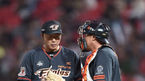 [OSEN=수원,박준형 기자] 22일 오후 경기도 수원시 수원구장서 열린 ‘2015 타이어뱅크 KBO리그’ kt 위즈와 한화 이글스의 경기, 3회말 한화 배영수 선발투수와 조인성 포수가 마운드서 이야기를 나누고 있다. 이날 경기서 kt와 한화