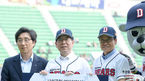 [OSEN=잠실, 민경훈 기자] 22일 오후 서울 잠실야구장에서 열린 '2015 타이어뱅크 KBO 리그' 두산 베어스와 SK 와이번스의 경기, 경기 전 서울시 박원순 시장이 두산 김승영 사장과 사회공헌업무 협약식을 가진 후 포즈를 취하고 있다