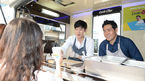 [OSEN=곽영래 기자] 이제훈, 샘킴의 '러브 챌린지 푸드트럭' 이벤트가 22일 오전 서울 삼성동 코엑스 동문광장에서 진행됐다. 이제훈과 샘킴이 샌드위치를 나눠주고 있다. 이제훈과 샘킴의 '러브 챌린지 푸드트럭' 통해 기부된 LOVE