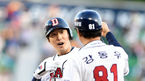 [OSEN=잠실, 지형준 기자] 23일 오후 서울 잠실구장에서 열린 '2015 타이어뱅크 KBO리그' 두산 베어스와 SK 와이번스의 경기, 7회말 무사 1,2루에서 두산 정수빈이 1타점 적시2루타를 날리고 기뻐하고 있다. SK는 채병룡이 선발로 나섰