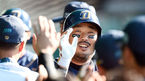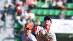 [OSEN=수원, 곽영래 기자] 23일 오후 경기도 수원시 수원구장서 '2015 타이어뱅크 KBO리그' kt 위즈와 한화 이글스의 경기가 열렸다. 1회말 무사 한화 안영명이 폭스의 호수비에 미소를 짓고 있다. 한화 이글스는 안영명을 선발로 내