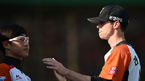[OSEN=목동, 곽영래 기자] 24일 오후 서울 목동구장에서 '2015 타이어뱅크 KBO 리그' 넥센 히어로즈와 NC 다이노스의 경기가 열렸다. 넥센 조상우와 박동원이 6회초 수비를 마치고 미소를 짓고 있다. 넥센은 좌완 신인 투수 김택형을