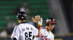 [OSEN=잠실, 김경섭 기자] 26일 오후 서울 잠실야구장에서 열린 '2015 타이어뱅크 KBO 리그' LG 트윈스와 kt 위즈의 경기, 7회말 1사 주자 없는 상황 LG 오지환이 솔로홈런을 치고 최태원 3루코치와 기쁨을 나누고 있다. 2연패에 빠진 LG