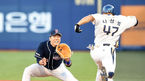 [OSEN=마산, 이대선 기자] 27일 오후 경남 창원 마산야구장에서 '2015 타이어뱅크 KBO 리그' NC 다이노스와 두산 베어스의 경기가 열렸다. 1회말 무사 1,2루에서 NC 나성범이 두산 니퍼트의 실책으로 출루에 성공하고 있다. NC는 에릭