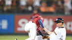 [OSEN=인천, 곽영래 기자] 28일 오후 인천SK행복드림구장에서 '2015 타이어뱅크 KBO 리그' SK 와이번스와 롯데 자이언츠의 경기가 열렸다. 4회말 2사 1루 롯데 김승회가 SK 박계현의 타구를 처리한 문규현을 향해 박수를 치고 있다. 롯