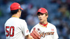 [OSEN=인천, 곽영래 기자] 28일 오후 인천SK행복드림구장에서 '2015 타이어뱅크 KBO 리그' SK 와이번스와 롯데 자이언츠의 경기가 열렸다. 4회초 무사 SK 박계현이 롯데 오승택의 타구를 잡으려다 놓친 박종훈의 상태를 체크하고 있다