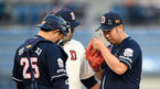 [OSEN=마산, 이대선 기자] 28일 오후 경남 창원 마산야구장에서 '2015 타이어뱅크 KBO 리그' NC 다이노스와 두산 베어스의 경기가 열렸다. 2회말 2사 1,2루에서 두산 유희관이 마운드를 방문한 양의지와 이야기를 나누고 있다. 두산은