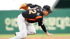 [OSEN=인천, 곽영래 기자] 28일 오후 인천SK행복드림구장에서 '2015 타이어뱅크 KBO 리그' SK 와이번스와 롯데 자이언츠의 경기가 열렸다. 1회말 무사 1루 롯데 김승회가 SK 조동화의 타구를 잡으려다 중심을 잃고 있다. 롯데는 김승회
