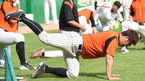 [OSEN=인천, 곽영래 기자] 28일 오후 인천SK행복드림구장에서 '2015 타이어뱅크 KBO 리그' SK 와이번스와 롯데 자이언츠의 경기가 열렸다. 경기전 롯데 강민호가 스트레칭을 하고 있다. 롯데는 김승회를 선발로 내세웠다. 시즌 시작할