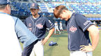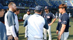 [OSEN=마산, 이대선 기자] 28일 오후 경남 창원 마산야구장에서 열릴 '2015 타이어뱅크 KBO 리그' NC 다이노스와 두산 베어스의 경기에 앞서 두산 민병헌이 NC에 사과하고 있다. 지난 27일 마산 NC-두산전에서는 7회 해커와 오재원이 1