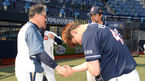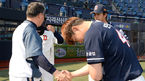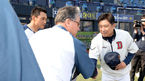 [OSEN=마산, 이대선 기자] 28일 오후 경남 창원 마산야구장에서 열릴 '2015 타이어뱅크 KBO 리그' NC 다이노스와 두산 베어스의 경기에 앞서 NC 김경문 감독과 두산 민병헌이 악수를 나누고 있다. 지난 27일 마산 NC-두산전에서는 7회