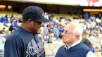 [OSEN=다저스타디움(LA 미국 캘리포니아주), 박승현 특파원]28일(이하 한국시간) 애틀랜타 브레이브스로 트레이드 된 내야수 후안 유리베가 토미 라소다 전 감독과 작별의 정을 나누고 있다. 유리베는 이날다저스타디움에서 열린