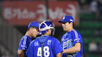 [OSEN=잠실, 김경섭 기자] 29일 오후 서울 잠실야구장에서 열린 '2015 타이어뱅크 KBO 리그' LG 트윈스와 삼성 라이온즈의 경기, 6회말 무사 주자 1루 삼성 차우찬이 LG 문선재를 볼넷으로 출루시키며 무사 주자 1,2루가 되자 코치와 포