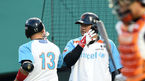 [OSEN=울산, 이대선 기자] 29일 오후 울산 문수야구장에서 '2015 타이어뱅크 KBO 리그' 롯데 자이언츠와 NC 다이노스의 경기가 열렸다. 3회말 무사에서 롯데 황재균이 좌월 솔로 홈런을 치고 홈에서 최준석과 하이파이브를 하고 있다.
