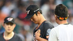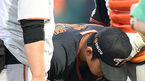 [OSEN=울산, 이대선 기자] 29일 오후 울산 문수야구장에서 '2015 타이어뱅크 KBO 리그' 롯데 자이언츠와 NC 다이노스의 경기가 열렸다. 3회말 2사에서 롯데 아두치 타구에 가슴을 맞았던 한화 안영명이 고통스러워하며 마운드를 내려