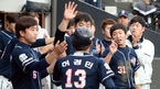 [OSEN=수원, 곽영래 기자] 29일 오후 경기도 수원 케이티 위즈파크에서 '2015 타이어뱅크 KBO 리그' kt 위즈와 두산 베어스의 경기가 열렸다. 1회초 1사 3루 두산 허경민이 오재원의 희생 플라이때 득점을 올린 뒤 기뻐하고 있다. 두산