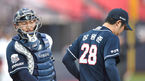 [OSEN=수원, 곽영래 기자] 29일 오후 경기도 수원 케이티 위즈파크에서 '2015 타이어뱅크 KBO 리그' kt 위즈와 두산 베어스의 경기가 열렸다. 1회말 2사 2루 두산 양의지와 장원준이 kt 장성우에게 적시타를 허용한 뒤 아쉬워하고 있다.