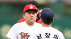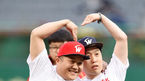 [OSEN=인천,박준형 기자] 29일 오후 인천SK행복드림구장서 열린 '2015 타이어뱅크 KBO 리그' SK 와이번스와 넥센 히어로즈의 경기에 앞서 개그맨 조세호와 남창희가 시구 시타를 마친뒤 빈볼 퍼포먼스 뒤 하트 포즈를 취하고 있다. 이