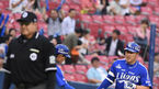 [OSEN=울산, 이대선 기자] 29일 오후 울산 문수야구장에서 '2015 타이어뱅크 KBO 리그' 롯데 자이언츠와 NC 다이노스의 경기가 열렸다. 경기에 앞서 롯데 선발 투수 린드블럼이 포수 강민호에게 사인을 보내고 있다. 롯데 자이언츠 에