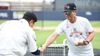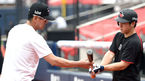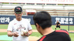 [OSEN=수원, 곽영래 기자] 29일 오후 경기도 수원 케이티 위즈파크에서 '2015 타이어뱅크 KBO 리그' kt 위즈와 두산 베어스의 경기가 열렸다. 경기전 kt 조범현 감독이 김진곤에게 토스 배팅볼을 던져주고 있다. 두산 베어스는 좌완