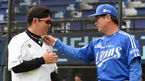 [OSEN=잠실, 김경섭 기자] 29일 오후 서울 잠실야구장에서 열린 '2015 타이어뱅크 KBO 리그' LG 트윈스와 삼성 라이온즈의 경기, 경기시작전 LG 양상문 감독과 삼성 류중일 감독이 인사를 나누고 있다. LG 와 삼성은 각각 류제국과 차우