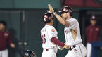 [OSEN=목동, 곽영래 기자] 2일 오후 목동구장에서 '2015 타이어뱅크 KBO 리그' 넥센 히어로즈와 한화 이글스의 경기가 열렸다. 5회말 1사 1루 넥센 스나이더가 투런 홈런을 때린 뒤 정수성 코치와 기뻐하고 있다. 넥센 히어로즈는 한
