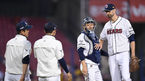 [OSEN=포항, 백승철 기자] 2일 오후 경북 포항시 포항야구장에서 열린 '2015 타이어뱅크 KBO 리그' 삼성 라이온즈와 롯데 자이언츠의 경기 4회초 무사 1루 강민호에게 투런포를 허용한 장원삼이 김태한 코치와 이야기를 나누고 있다