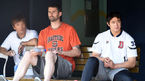 [OSEN=잠실, 김경섭 기자] 2일 오후 서울 잠실야구장에서 열린 '2015 타이어뱅크 KBO 리그' 두산 베어스와 KIA 타이거즈의 경기, 경기시작전 두산 김현수, 민병헌이 연상은 아나운서와 이야기를 나누고 있다. 두산은 에이스 더스틴 니